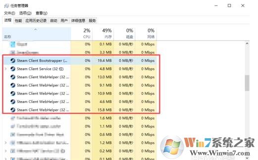 2、然后在进程中找找steam有关的进程,全部结束掉;