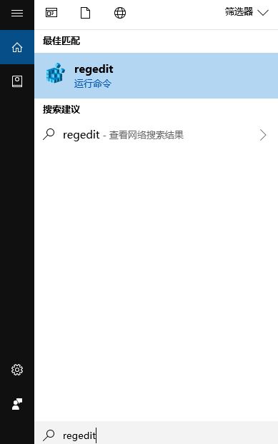 1、按下windwos+S打开小娜,在Cortana中输入regedit,回车打开注册表;