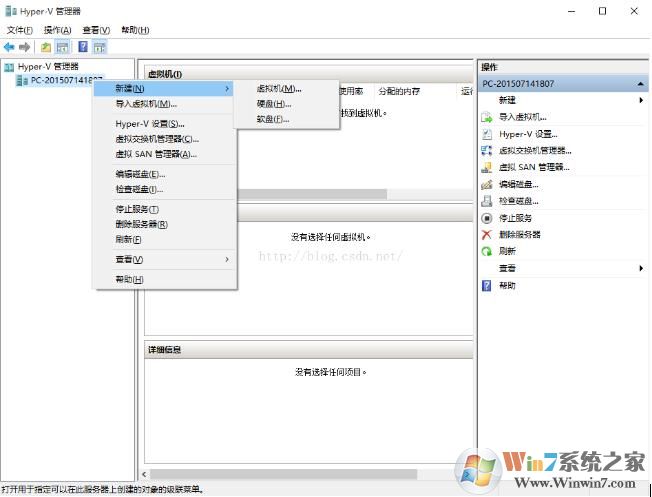 1、打开Win10 hyper-v管理器后右键物理机(你的计算机名),选择新建虚拟机;