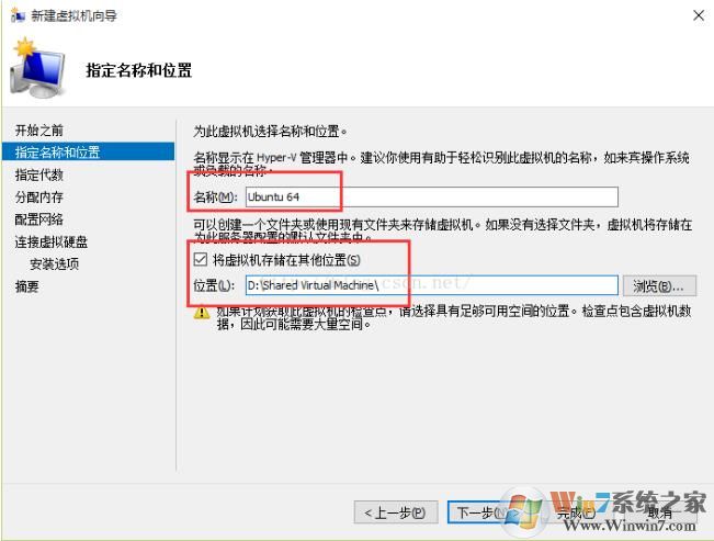 3、这里指定虚拟机名字和存储位置(建议储存在磁盘空间比较大的磁盘)