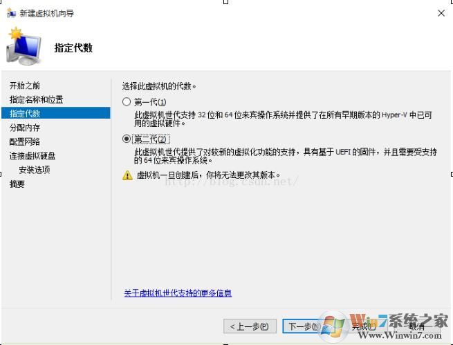4、择虚拟机版本,建议使用二代。一代和之前的兼容,注意选择后以后不能更改;