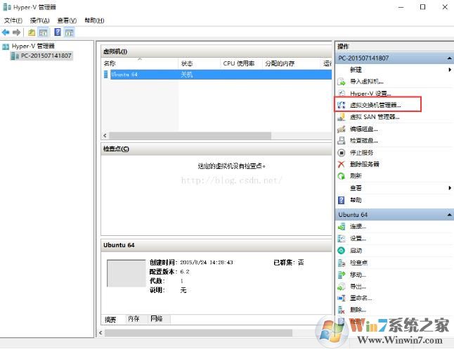 6、虚拟机选择网络,点击“虚拟机交换机管理器”;
