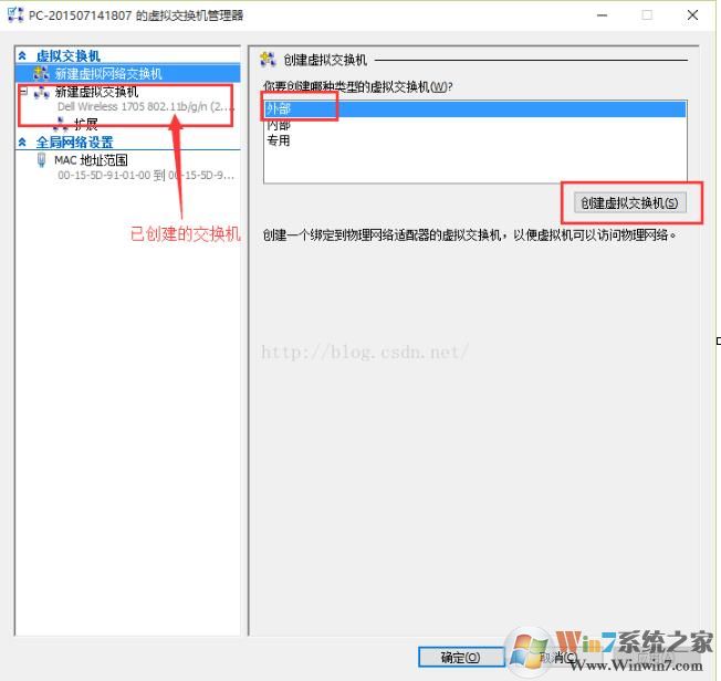7、选择外部,然后创建虚拟机交换机; Win11系统之家 www.xiuchufang.com