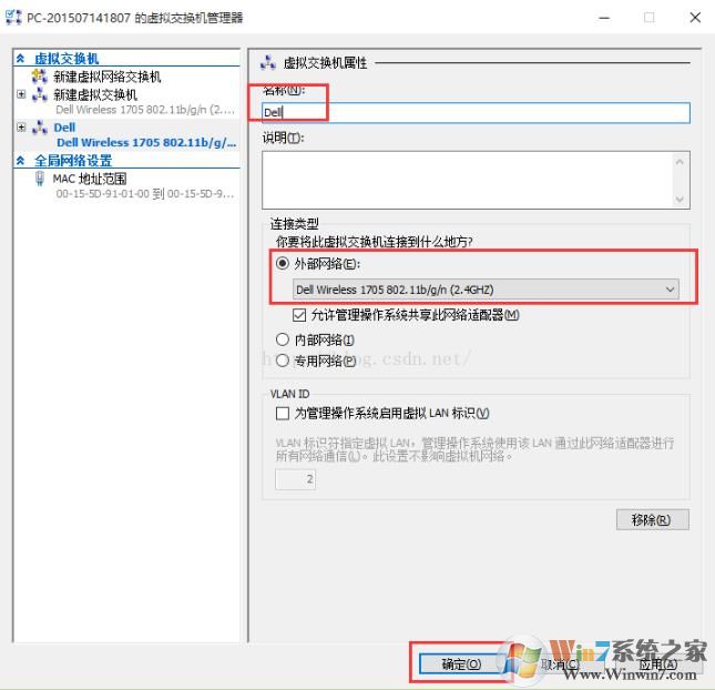 8、拟交换机的名称,选择外部网络,还有网卡;