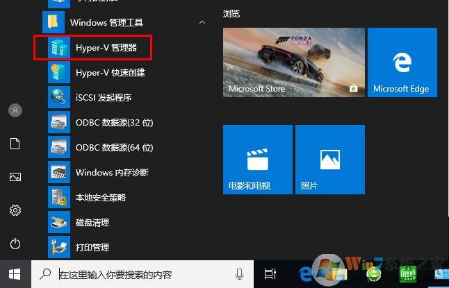 5、安装好之后 我们就可以在 开始——Windows附件——Windows管理工具中找到 hyper-V打开了,。