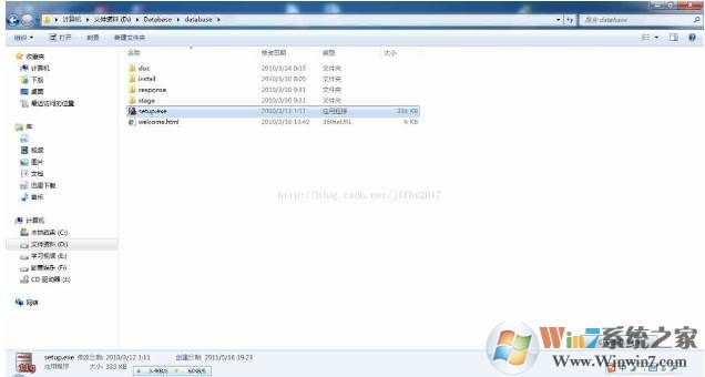 2、将两个压缩包解压到同一个目录下,即“database”,然后单击解压目录下的“setup.exe”文件:
