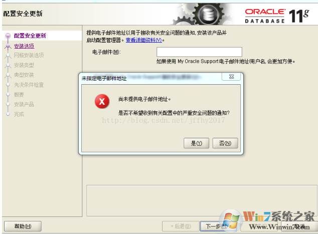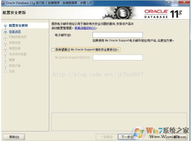 3、在出现的“配置安全更新”窗口中,取消“我希望通过My Oracle Support接受安全更新”,单击“下一步”: