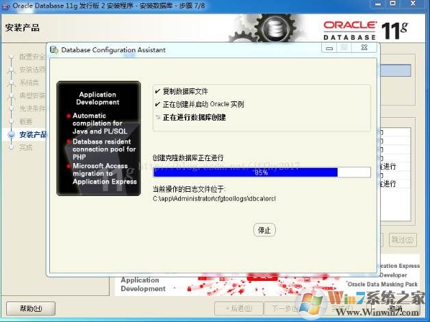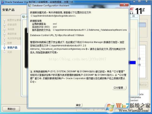 数据库配置文件已经安装到 C:\app\Administrator,同时其他选定的安装组件也已经安装到 C:\app\Administrator\product\11.2.0\dbhome_1。