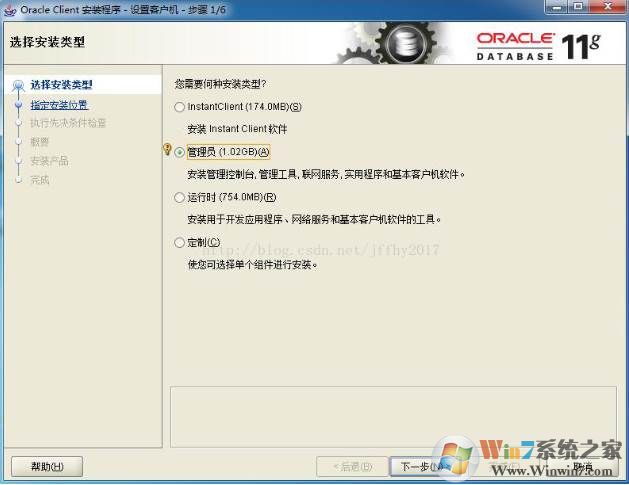 在选择安装类型时,选择“管理员”,如下图: