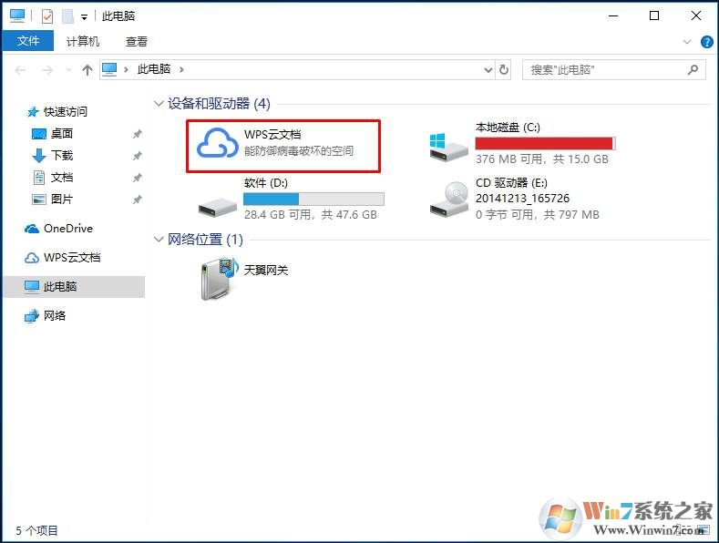 4、删除之后退出注册表编辑器,我们再看此电脑中,已经没有了WPS云文档了。