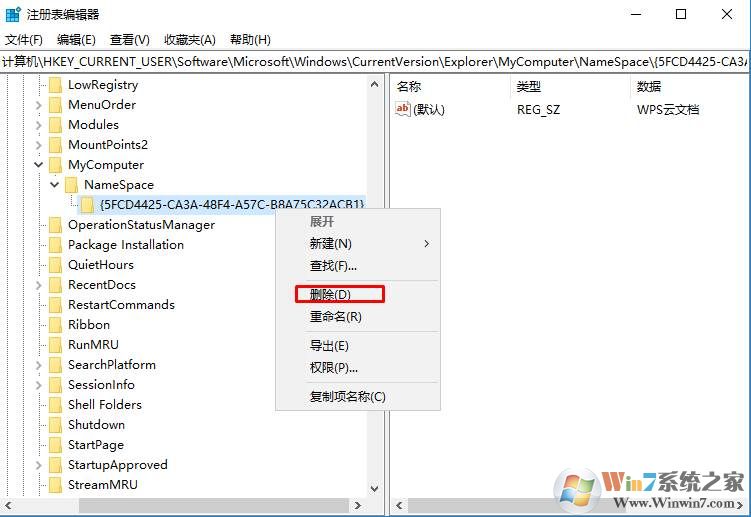 然后展开,右键点击{5FCD3325-CA3A-48F4-A57C-B8A75C32ACB1}删除