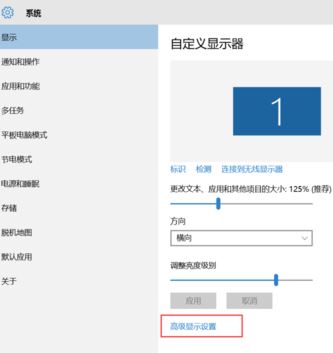 2、在显示设置界面中,点击下方的“高级显示设置”,如图: