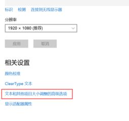 3、在高级显示设置界中,把分辨率设置成最佳,拖动到最后面,选择“文本和其他项目大小调整的高级选项”;