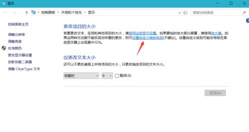 4、接着在“更改大小项目”中,点击蓝色字体的“设置自定义级别缩放”,www.xiuchufang.com如图: