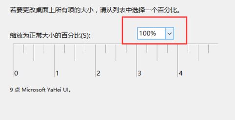 5、看自己的需要,可以将其设置为100%,代表正常缩放,也会有人喜欢将其设置为124%觉得更好,这里就将其设置为100%,,当然可以自定义,小编设置了108,感觉效果不错哦!