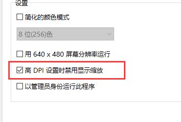 除了以上方法我们还可以右键点击程序,选择属性,切换到兼容性,勾选高DPI设置时禁用显示缩放,还原软件的大小,如图: