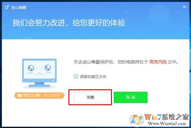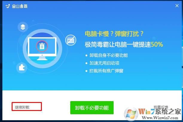 4、还是点仍然卸载,感觉金山毒霸有点啰嗦啊。