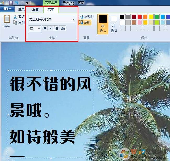 2、怎么样,系统自带的画图功能还是可以的吧,可以设置字体,字号等等~添加一般的文字,不需要什么特效的话已经够用了。
