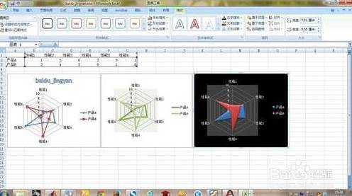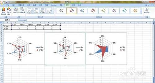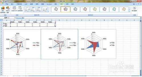Excel直接给出的雷达图可能在颜色上啊,线条上啊可能不是你喜欢的类型。你可以在“图表工具”中的三个功能中进行修饰。