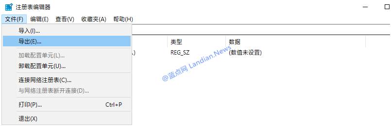2、改注册表先备份:为了系统安全,因此在删改注册表键值前我们应该先导出备份下。