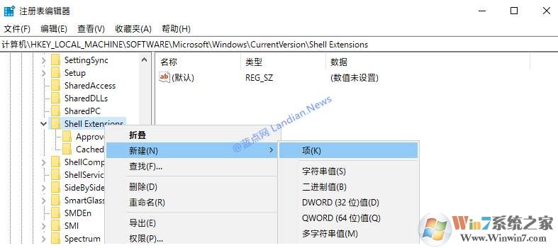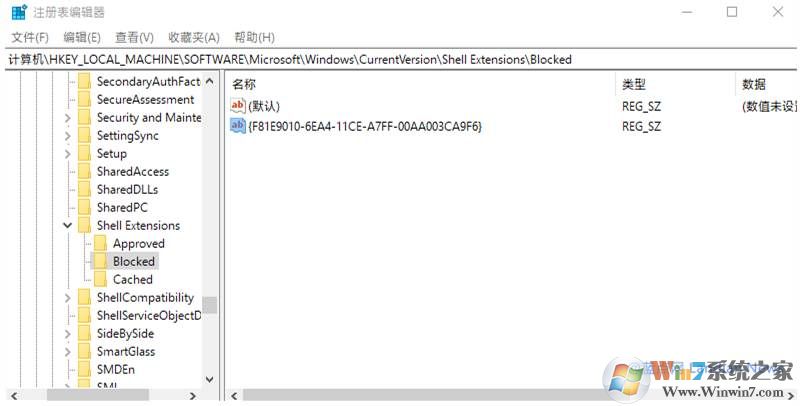 计算机\HKEY_LOCAL_MACHINE\SOFTWARE\Microsoft\Windows\CurrentVersion\Shell Extensions