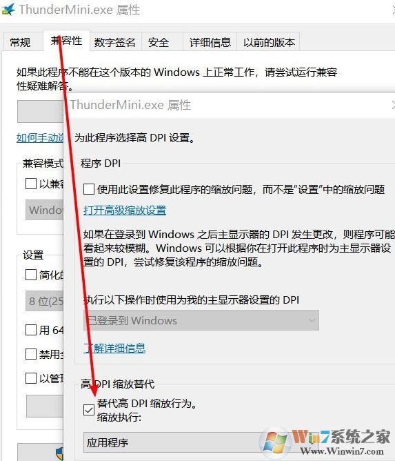 在Windows10的最新几个版本中,可以自定义第三方软件的DPI缩放。对于显示模糊的软件,找到并选择其主程序,右键打开属性,在兼容性标签页中,选择更改高DPI设置,在打开的对话框中,勾选“替代高DPI缩放行为”,然后在下拉框中选择“应用程序”,之后关闭打开的窗口,重新打开软件,应该就不模糊了。以迅雷官方精简版为例,如下图所示: