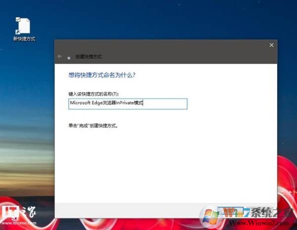 给它起一个名字,比如“Microsoft Edge浏览器InPrivete模式”,点击确定即可。到这里就大功告成了。