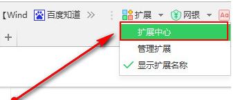 1、打开360浏览器,依次点击“扩展-扩展中心”,如截图: