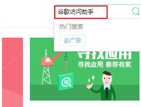 2、在右上角的搜索框输入“谷歌访问助手”,点击搜索,如截图: