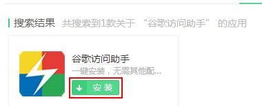 3、在搜索结果中就可以看到“谷歌访问助手”,点击安装,如截图: