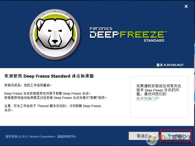 2、点击下一步安装 冰点还原精灵,安装过程很简单,只要同意协议下一步即可。
