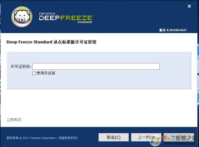 3、到了输入许可证的界面,如果没有可以点击购买,也可以先使用评估版(有时间期限);