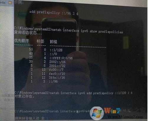 4、完了后输入命令netsh interface ipv6 show prefixpolicies查看优先级:xiuchufang.com