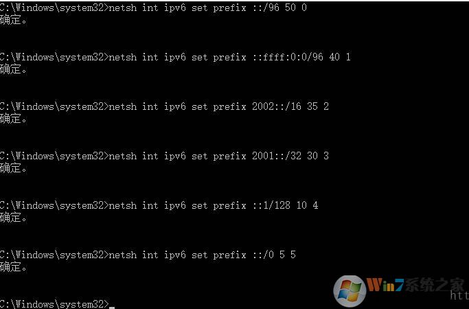 现在需要设置使::/96、::ffff:0:0/96的优先级高于::/0和::1/128,在命令行中依次设置优先级:(复制后逐个执行)