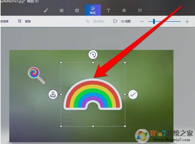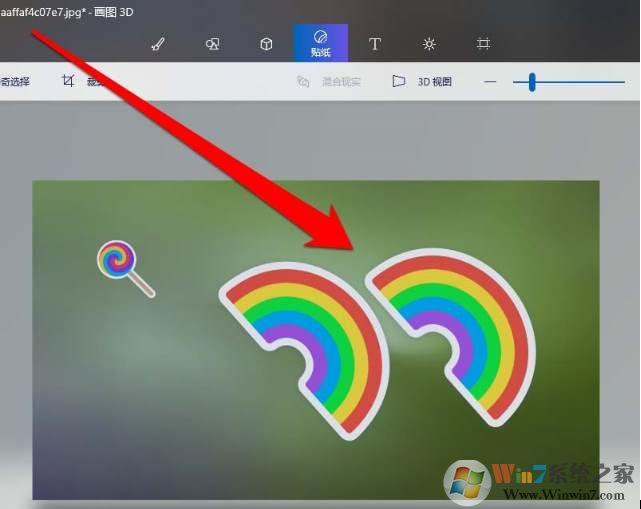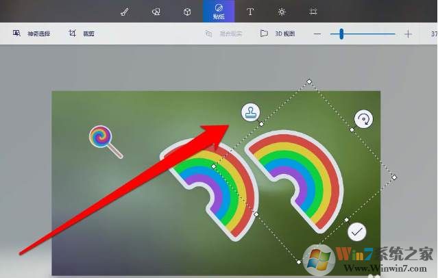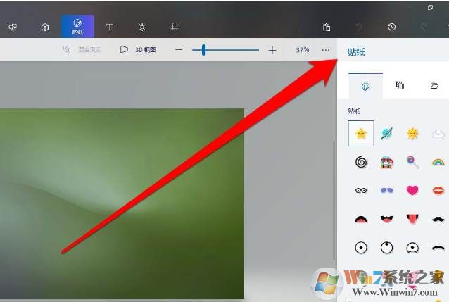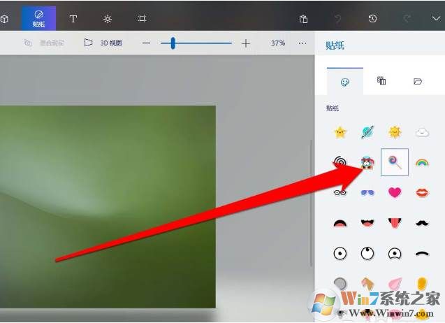 4、找到需要的贴纸,进行点击贴纸。画图3D内置了各种各样的贴马铃薯,大家可以选择自己需要的。