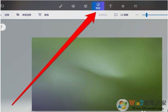 2、添加完成图片后,在画图软件点击贴纸按钮。