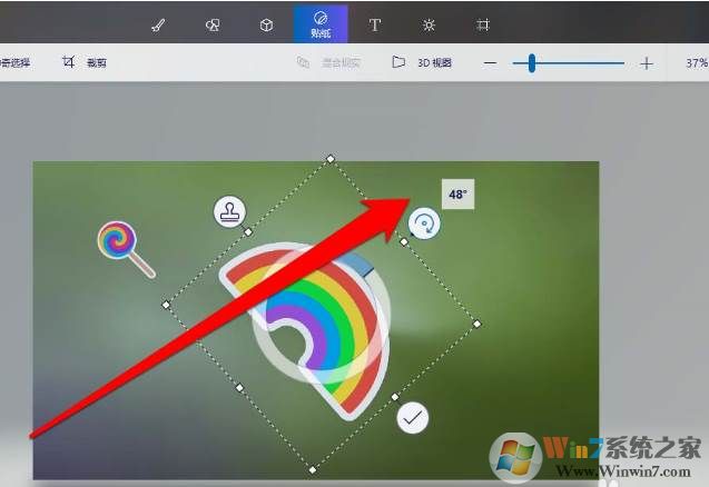 7、我们首先将贴贴纸,进行按角度旋转。