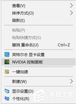 2、右键点击桌面,在右键菜单中找到Nvidia控制面板打开;