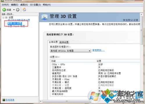 3、在NVIDIA 控制面板 左侧展开 3D 设置 -- 管理3D 设置 ;