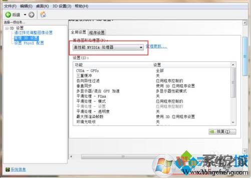4、在右侧“首先图形处理器”选择“高性能NVIDIA处理器”,完成后,点击下方的“应用”按钮;