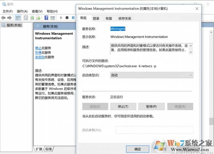 3、进入“服务”管理界面,找到“Windows Management Instrumentation”这个选项,看看它的启动方式是不是“自动”,如果是其他形式的话,改成“自动”后重启电脑就行了。