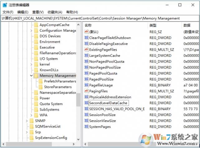 找到DisablePagingExecutive、LargeSystemCache、SecondLevelDataCache这三个选项。然后逐一进行设置: