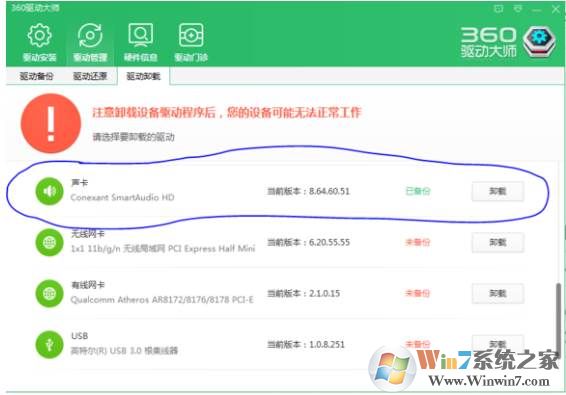 1、首先我们可以使用驱动软件(驱动大师、驱动精灵等)卸载原有声卡驱动之后再重新安装一下。