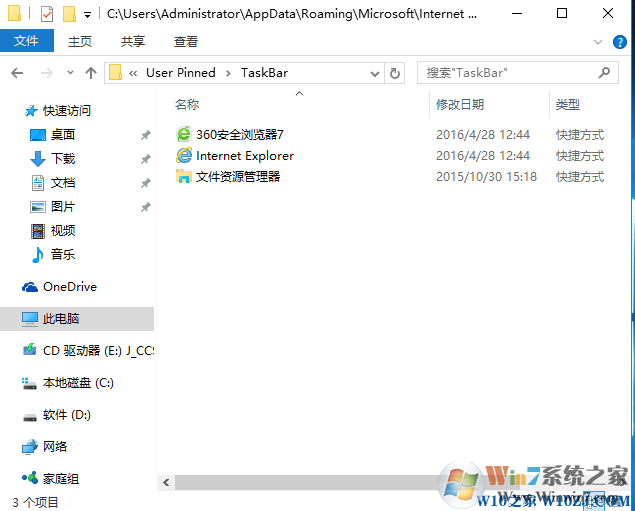 得到地址为:C:\Users\Administrator\AppData\Roaming\Microsoft\Internet Explorer\Quick Launch\User Pinned\TaskBar\www.w10zj.com