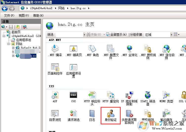 1、首先打开IIS,然后选择你要设置的网站,然后在右侧打开【身份验证】;