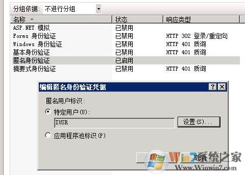 2、右键匿名身份验证,选择“编辑”,选择“特定用户IUSR”; Win11系统之家 www.xiuchufang.com 整理
