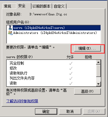3、然后打开你的网站文件夹,右键属性,来到安全选项下,点击编辑xiuchufang.com
