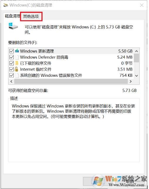 2、然后看到磁盘清理选项上的“其他选项”选项卡了吗?点进去看看!