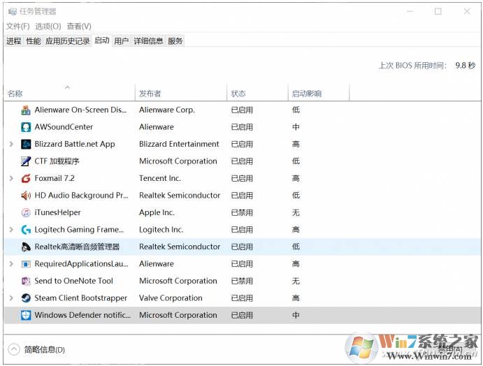 此外,还有一项Windows Defender的隐藏功能,就是“下载即时查杀“,这个并没有提供可供关闭的选项,需要大家Ctrl+Shift+Esc组合键打开任务管理器,在“启动”选项卡下找到Windows Defender进程并选择”禁用“。