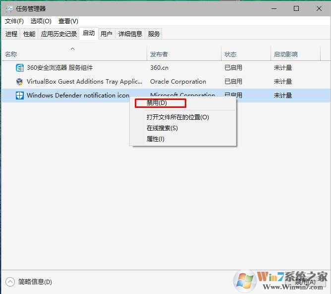 禁用启动项之后,启动win10系统windows defender正常运行,但是不会有图标显示。